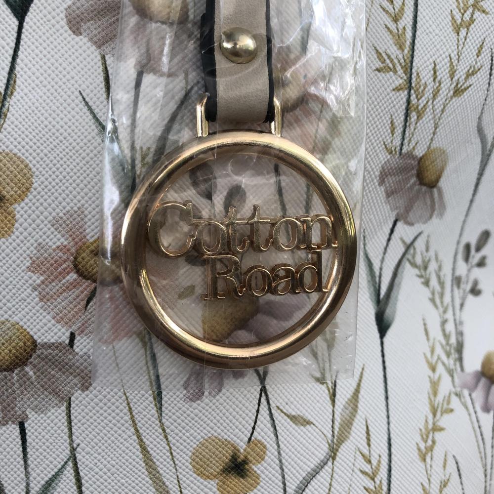 Beige Double zipper cotton road floral bag