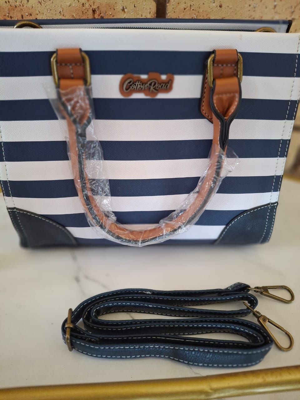 Striped Cotton road ladies handbag